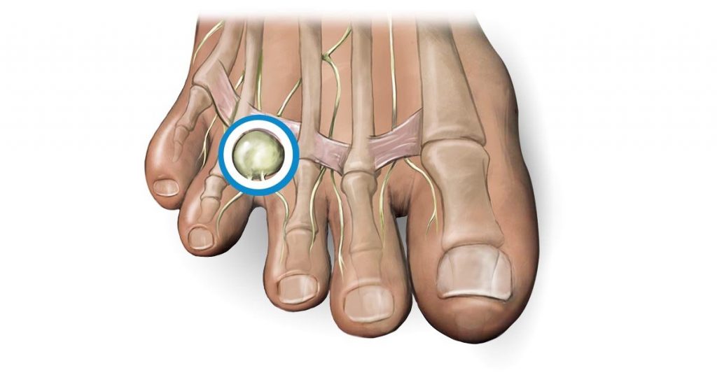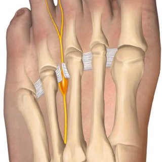 Ουσιαστικά πρόκειται για μία διόγκωση ή υπερτροφία του πελματιαίου νεύρου, λίγο πριν αυτό διακλαδωθεί στον έσω και έξω κλάδο του. Στο σημείο αυτό το πελματιαίο νεύρο βρίσκεται σχετικά επιφανειακά και κοντά στο υποδόριο προς τα κάτω ενώ προς τα πάνω την οροφή του σχηματίζει ο εν τω βάθει εγκάρσιος μετατάρσιος σύνδεσμος, ο οποίος είναι πολύ ισχυρός και συγκρατεί τα μετατάρσια στη θέση τους. Έτσι, κατά την βάδιση το νεύρο πιέζεται από το υποδόριο προς τα πάνω και από τον εγκάρσιο σύνδεσμο προς τα κάτω, σε έναν έτσι κι αλλιώς περιορισμένο χώρο.